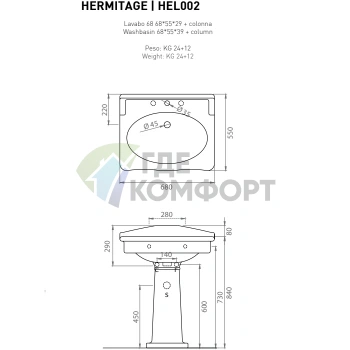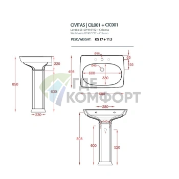 Колонна для раковины Artceram CIVITAS белая 68 см (CIC001 01 00 bi*1)