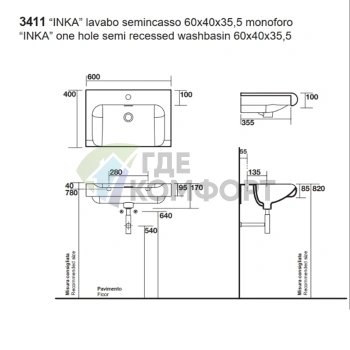 Раковина KERASAN Inka Project 40x40 см без отверстия, белая (341201*0)