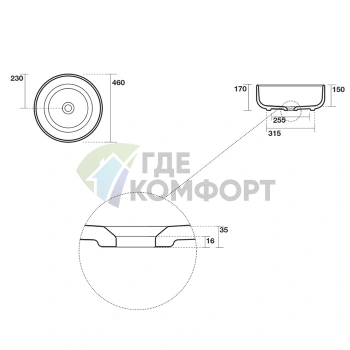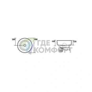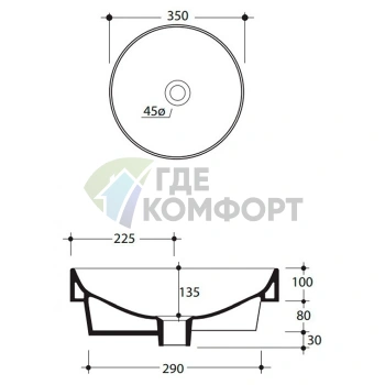 Раковина Kerasan Cento круглая 35 см, белая матов (355830)