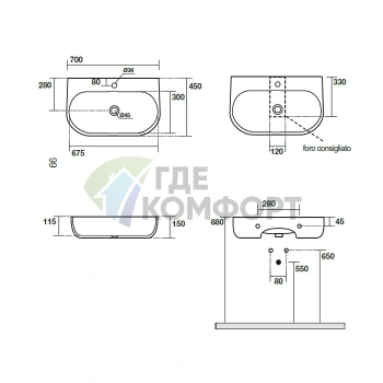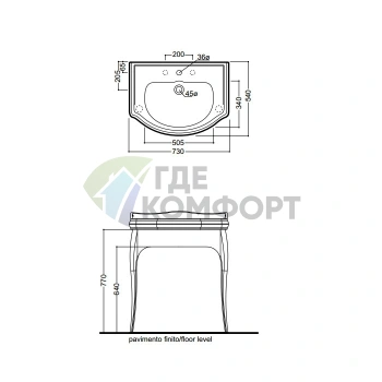 Раковина KERASAN Retro 73 54 см с 3 отверстиями, белая (104701*3)