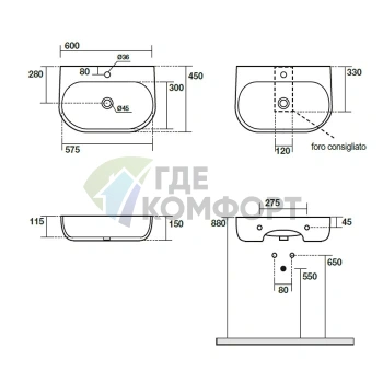Подвесная раковина Kerasan Nolita 60x45 см, цвет Ferro Matt (534189*1 )