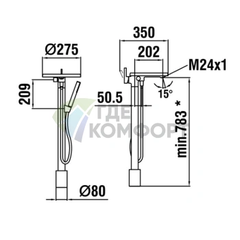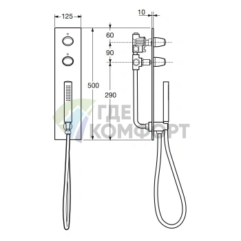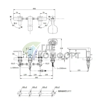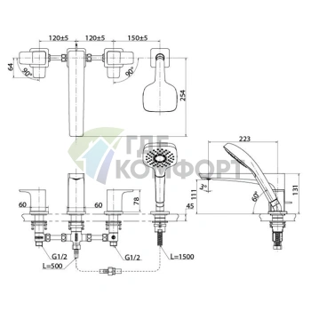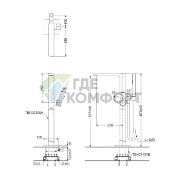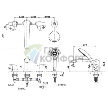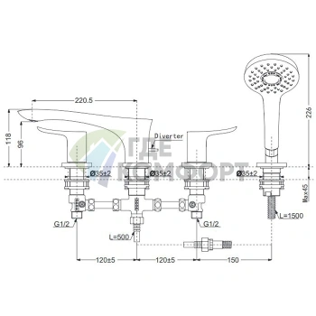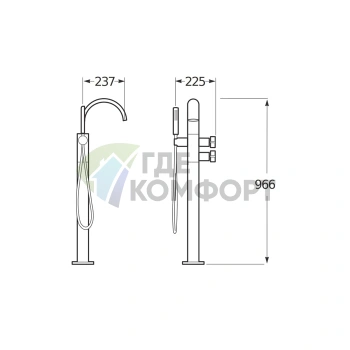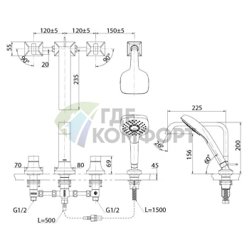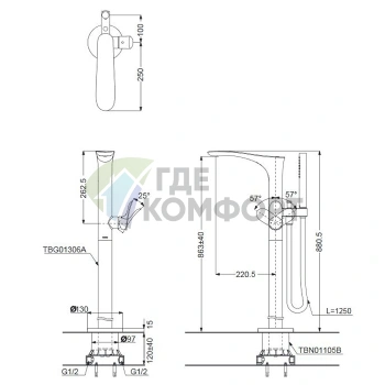 Смеситель для ванны TOTO NC с ручным душем Comfort Wave (TBG01202R)