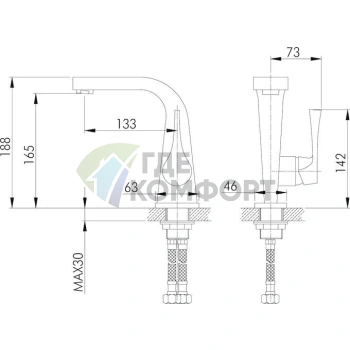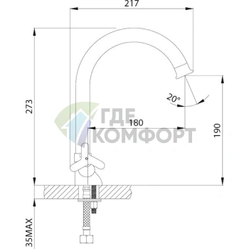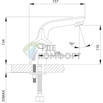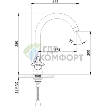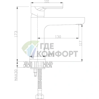 Оснащение: душевой шланг, душевая лейка, аэратор, держатель для душевой лейки