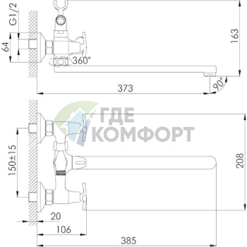 Назначение: для ванны с душем, набор: смеситель и душевой гарнитур
