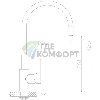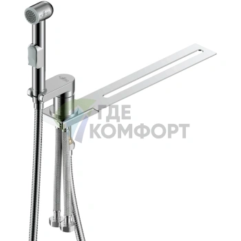 Оснащение: душевой шланг, душевая лейка, дивертор, эксцентрики, аэратор, держатель для душевой лейки
