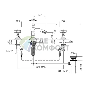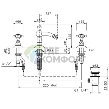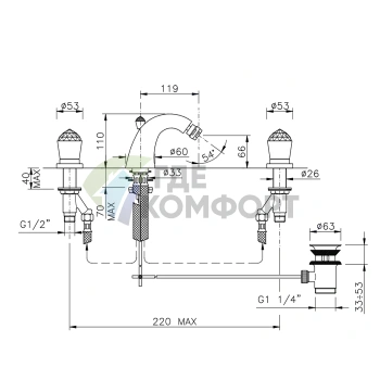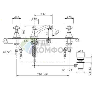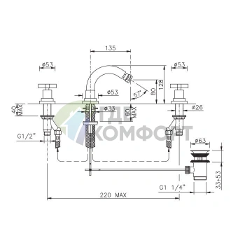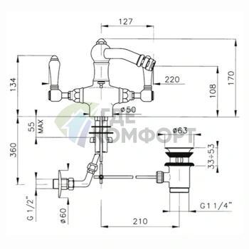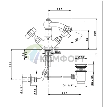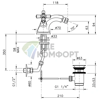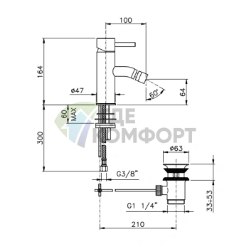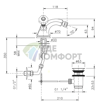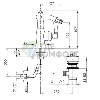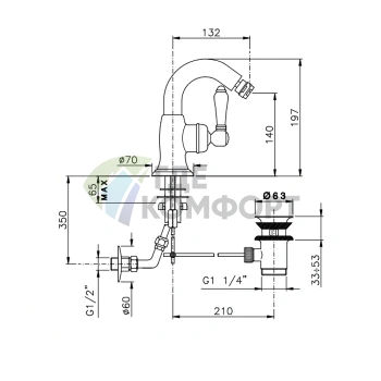 Смеситель для биде Nicolazzi Monte Croce с душем, золото (2210GO27)