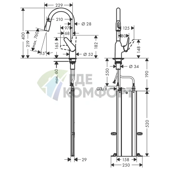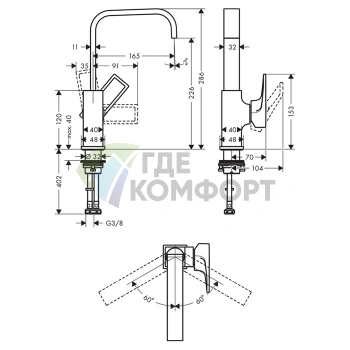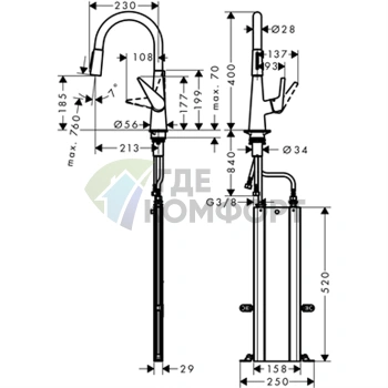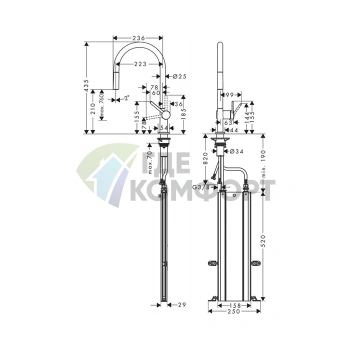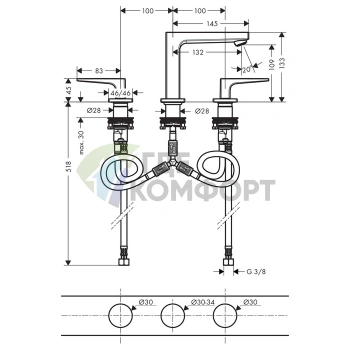 Смеситель для раковины Hansgrohe Metropol 110, золото (32507990)
