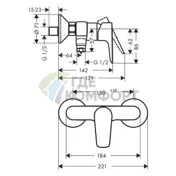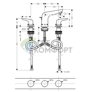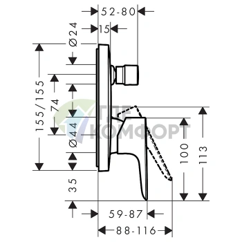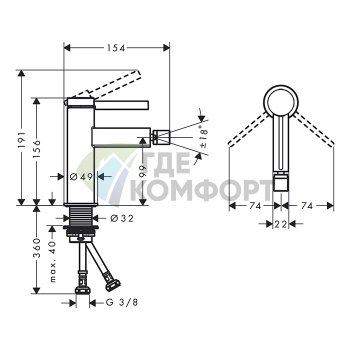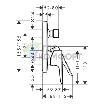 Смеситель для биде Hansgrohe Metris S настенный, хром (31261000)