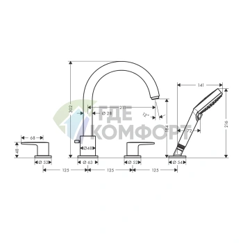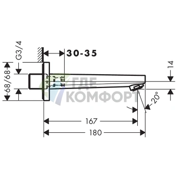 Настенный излив для ванны Hansgrohe Metropol 167 мм, хром (32542000)