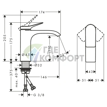 Смеситель для раковины Hansgrohe Vivenis матовый белый (75022700)