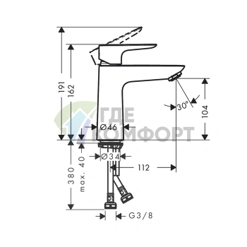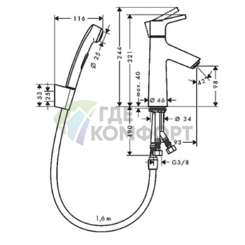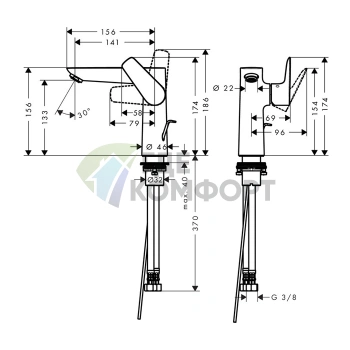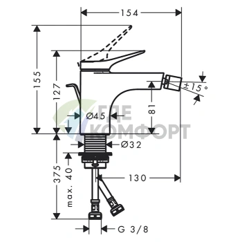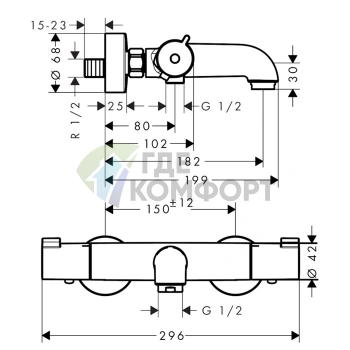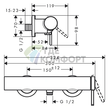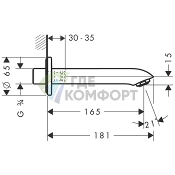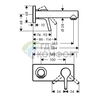 Смеситель для ванны Hansgrohe Metris, 165 мм, хром (31494000)