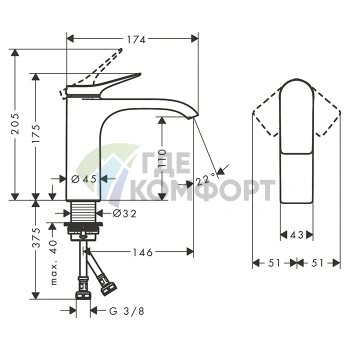 Излив для ванны Hansgrohe Finoris матовый черный (76410670)