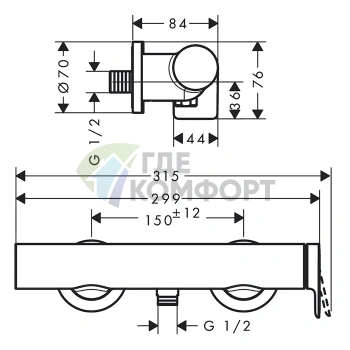 Смеситель для душа Hansgrohe Vivenis настенный, хром (75620000)