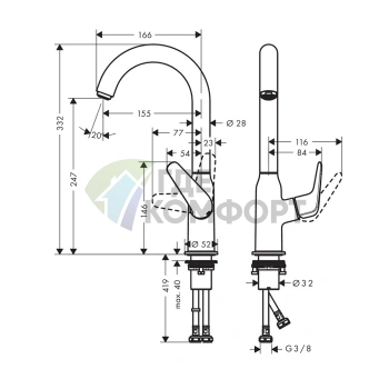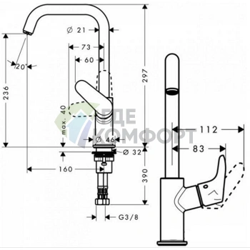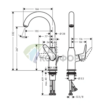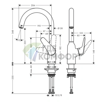 Смеситель для раковины Hansgrohe Novus 240 мм, хром (71128000)