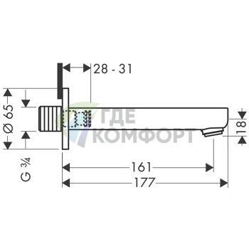 Излив для ванны Hansgrohe Metris S 152 мм, хром (31417000)