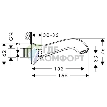 Излив для ванны Hansgrohe Metris Classic 152 мм, хром (13413000)