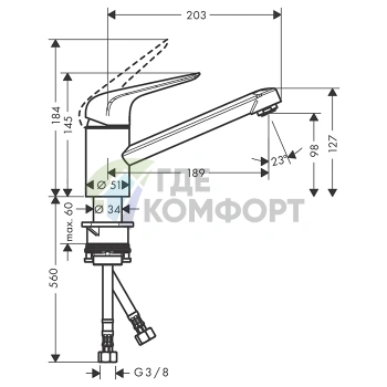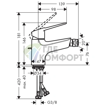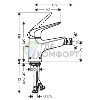 Смеситель для раковины Hansgrohe Novus Care 70 мм, хром (71920000)