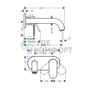 Смеситель для раковины Hansgrohe Novus 100 мм, хром (71031000)