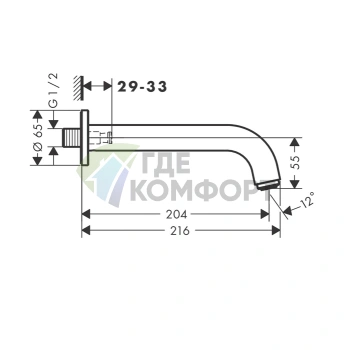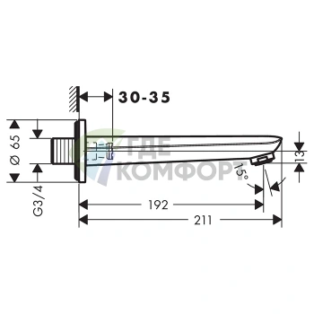 Излив для ванны Hansgrohe Novus: настенный, 192 мм, хром (71320000)