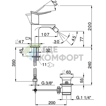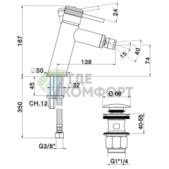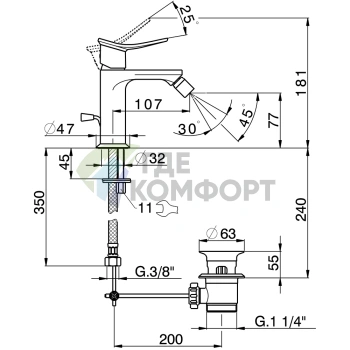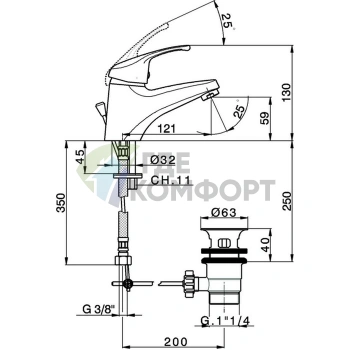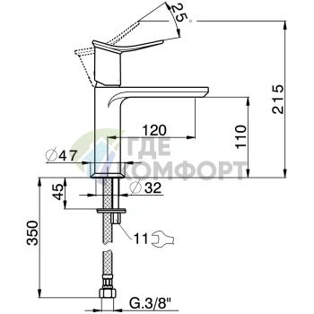 Излив настенный HUBER Lynox 300 мм, хром (SS013540D1)