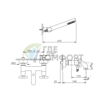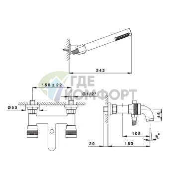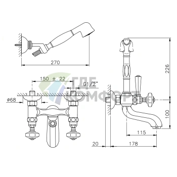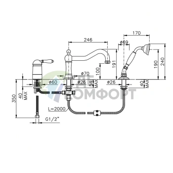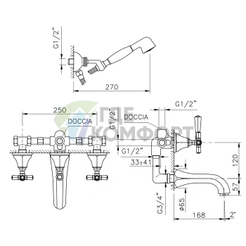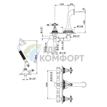 Смеситель для ванны Nicolazzi Monte Croce с душем, золото (2202GO27)