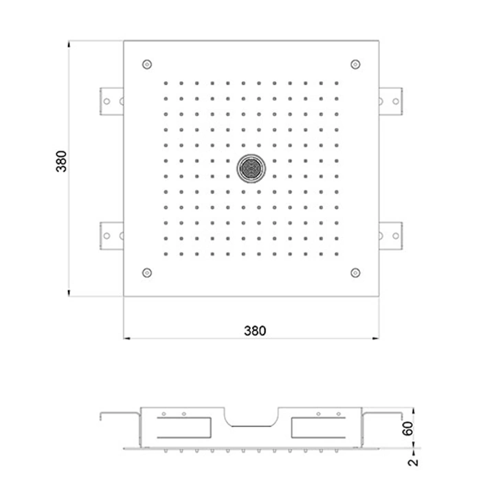 Душевая лейка Almar потолочная встраиваемая 380x380 мм, 2 режима, нержавеющая сталь (E044258.MS)