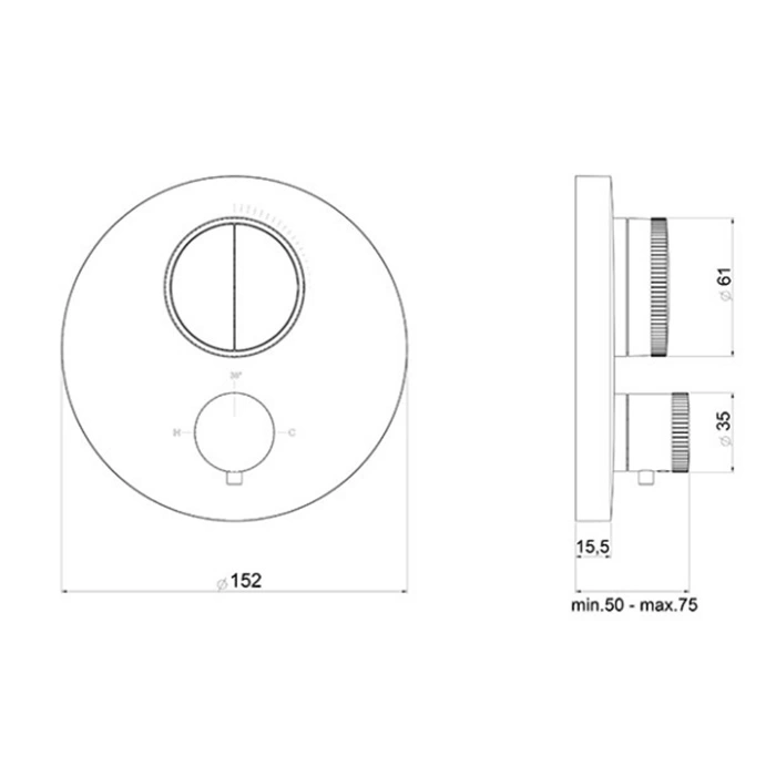 Внешняя часть термостата Almar PUSH ROUND CORE на 2 потребителя, хром (E176632.CR)