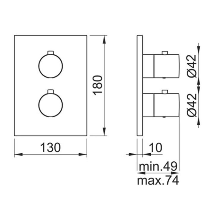 - Универсальность и совместимость. Модель E176882.CR с хромированным покрытием разработана для скрытого монтажа и совместима с большинством термостатических панелей (термоголовок) и смесителей соответствующего стандарта.