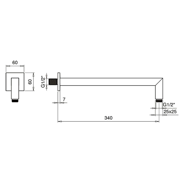 Almar SQUARE Квадратный настенный кронштейн 340 мм, латунь с хромированным покрытием (E021003.CR)