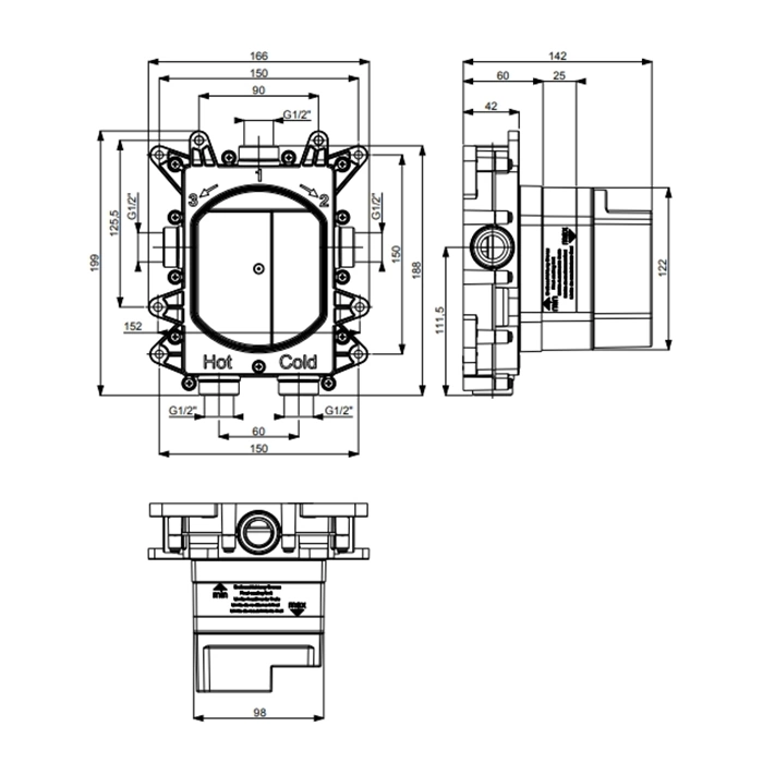 Встроенная часть Almar E134001: технический анализ для термостатов и смесителей