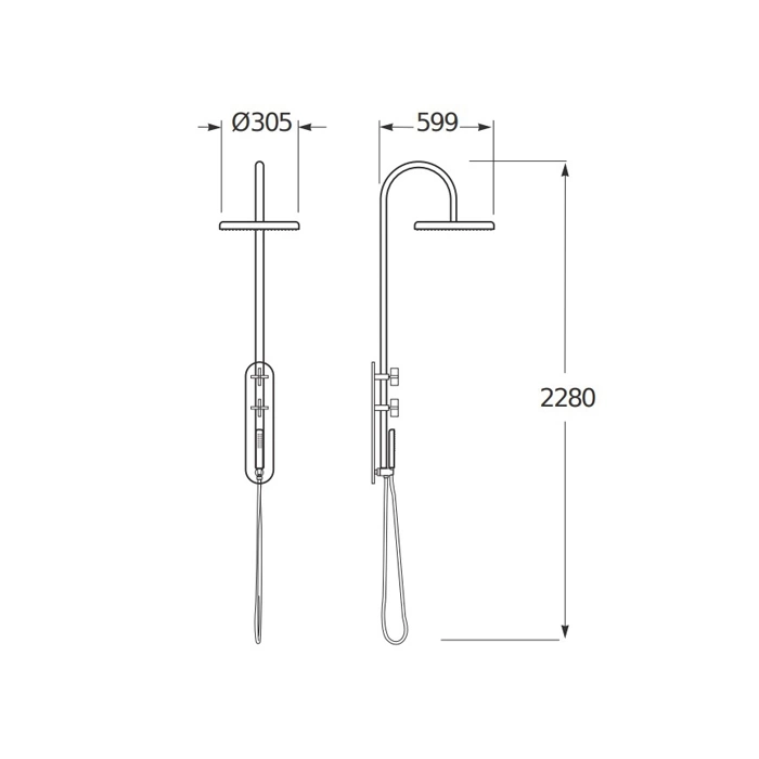 - Гибкий шланг и ручной душ.