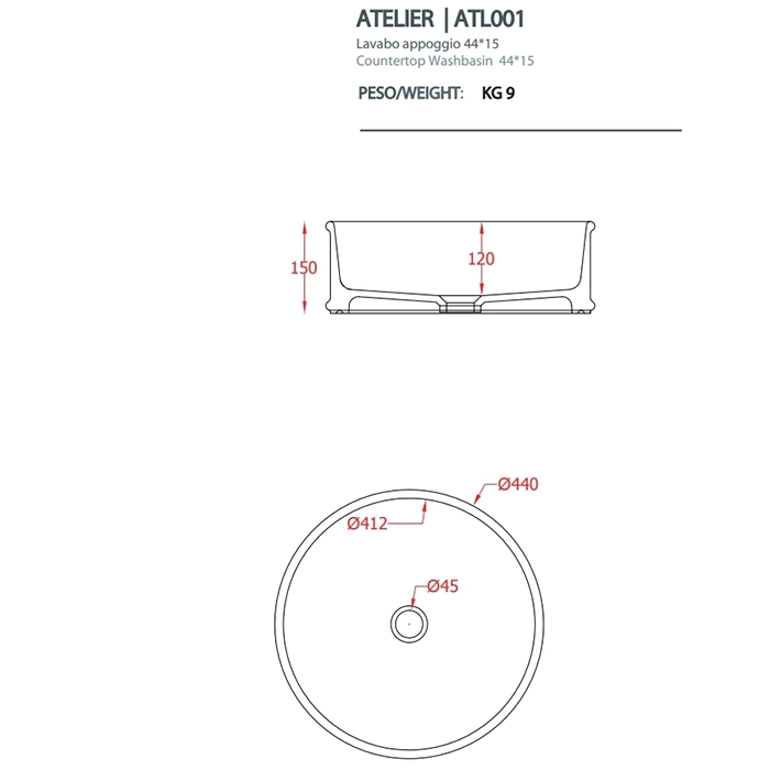 Круглая раковина Artceram Atelier диаметром 44 см - это элегантное решение для современной ванной комнаты или кухни. Модель без предварительно выполненных отверстий предоставляет полную свободу для монтажа смесителя в любом удобном месте, что особенно ценно при реализации индивидуальных дизайнерских проектов.