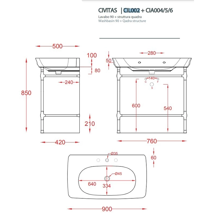 Раковина CIVITAS создана для интеграции в подвесные или напольные тумбы с соответствующей столешницей. Требуется аккуратная врезка по шаблону, который входит в комплект. Убедитесь, что выбранная вами мебель выдержит нагрузку и соответствует габаритным размерам чаши.