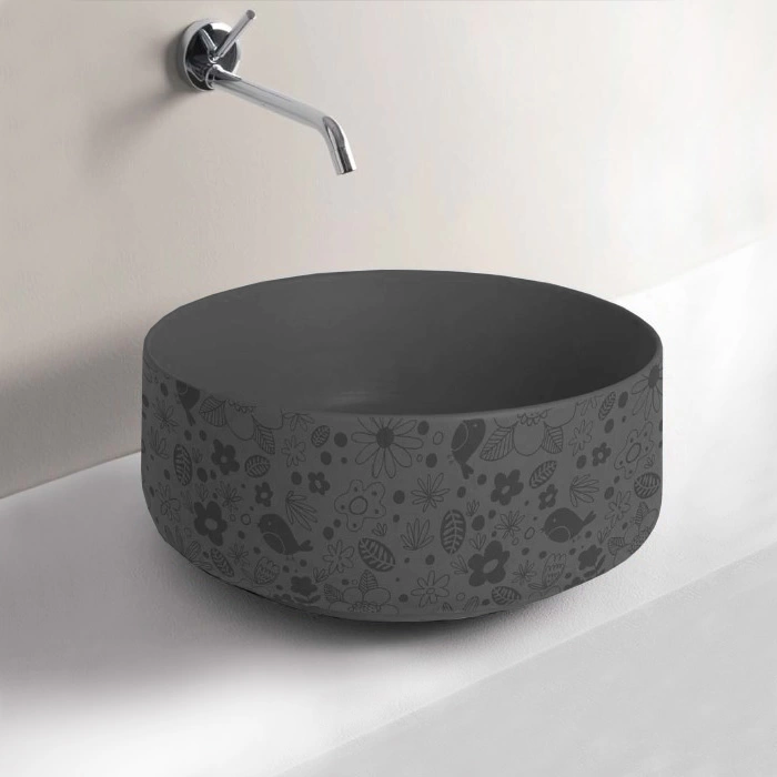 Раковина Artceram Cognac 42 см на столешницу без отверстий, цвет Grigio oliva с декором Lol (COL001 15 87)