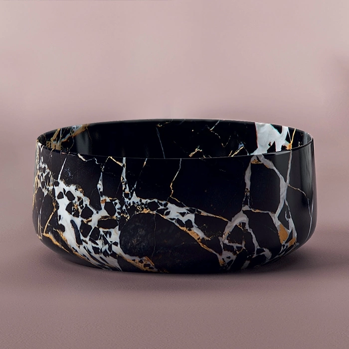 - Цвет portoro gold: глубокий и сложный оттенок, сочетающий благородные золотистые переливы с насыщенными тёмными подтонами. Это делает раковину самостоятельным акцентом в интерьере.