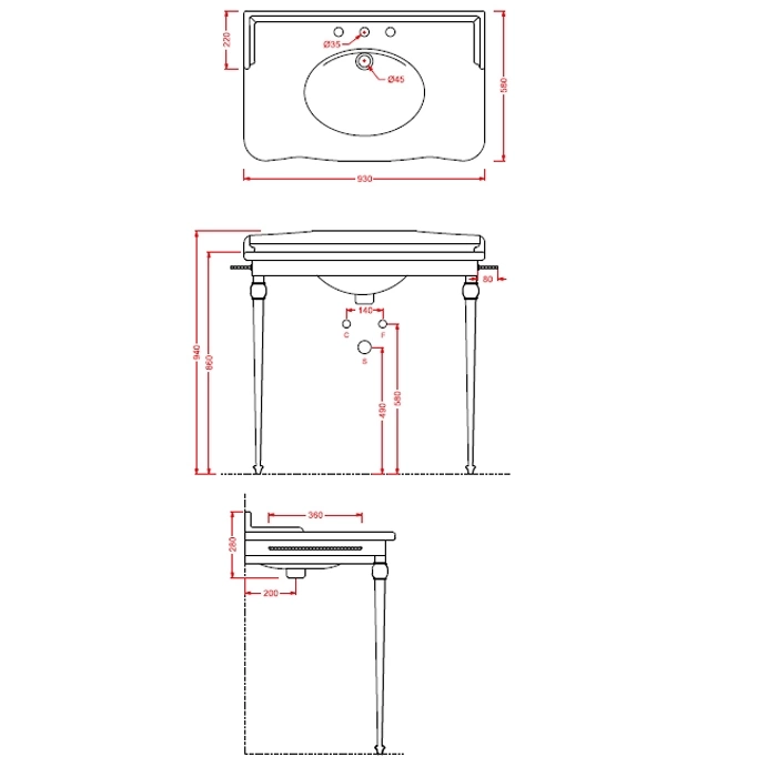 Размеры 92x58 см оптимальны для просторных санузлов, обеспечивая комфортное пользование и достаточное пространство вокруг для размещения необходимых предметов. Три монтажных отверстия на столешнице позволяют установить практически любую конфигурацию смесителя — от классической двухвентильной до современной однорычажной или термостатической.