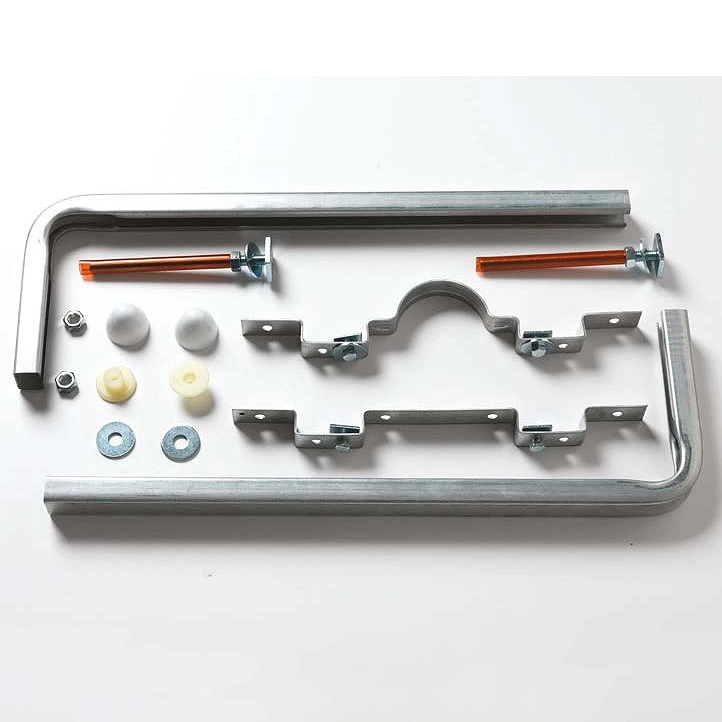 - Комплектация: 2 крепежные пластины со встроенными шпильками, гайки, декоративные заглушки, пластиковые регулировочные втулки
