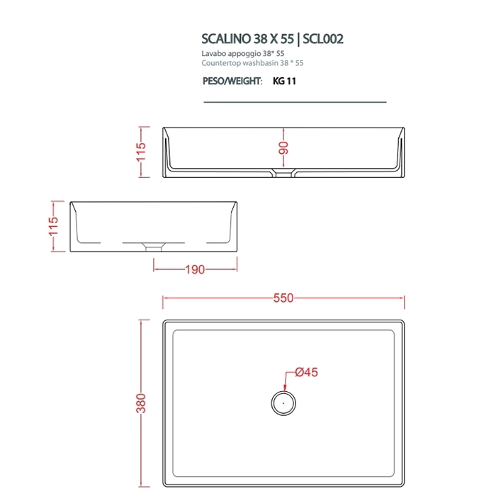 Точные габаритные размеры данной модели: 550 мм в длину, 380 мм в ширину. Для правильного подбора необходимо замерить пространство на тумбе или столешнице, учитывая, что раковина является накладной и будет монтироваться сверху. Убедитесь, что размеры тумбы не меньше размеров раковины, и остаются удобные зазоры для монтажа и подводки коммуникаций.