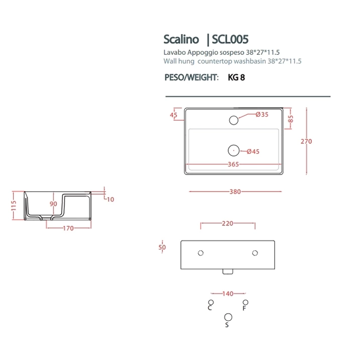 - Универсальность: Благодаря нейтральному белому цвету и строгой геометрии, раковина Scalino гармонично сочетается с любой мебелью и отделкой, поддерживая как классические, так и современные стили.