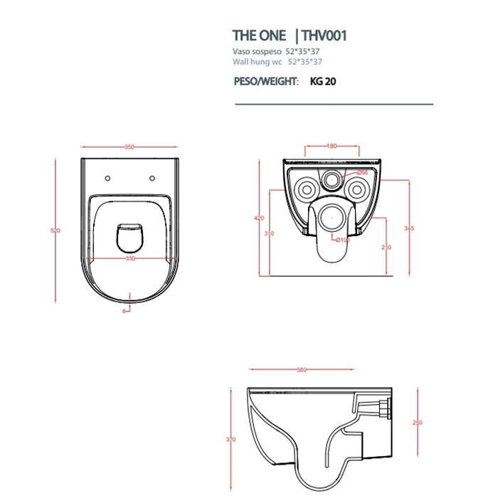 Унитаз Artceram THE ONE оснащен двухрежимной кнопкой смыва, позволяющей использовать полный (около 6 литров) или экономичный (около 3 литров) объем воды. Это способствует значительному снижению расхода воды.