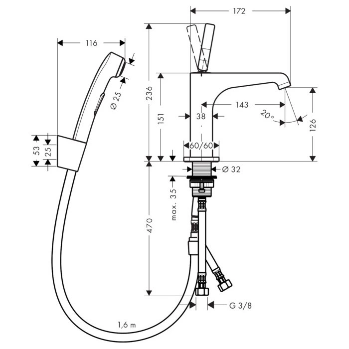 Смеситель для раковины AX Citterio E с гигиеническим душем и функцией биде, хром (36130000)