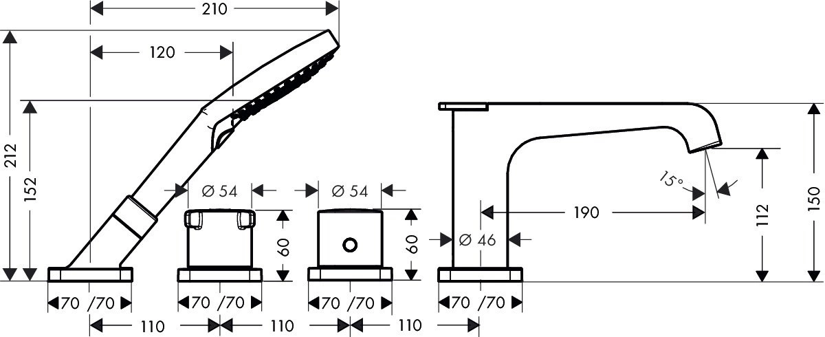 Обратите внимание на четыре выхода. Это функциональное решение для современной ванной комнаты. Вы можете одновременно подключить верхний душ, ручной душ, излив для наполнения ванны и, например, дополнительную насадку для биде. Продумайте эту конфигурацию до покупки, чтобы не пришлось переделывать разводку.