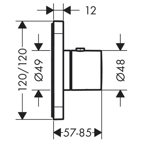 Монтажная рамка (лицевая панель) термостата AX Citterio E имеет стандартные размеры 12 на 12 сантиметров. Это необходимо учитывать при подготовке ниши в стене или выборе установочной коробки.