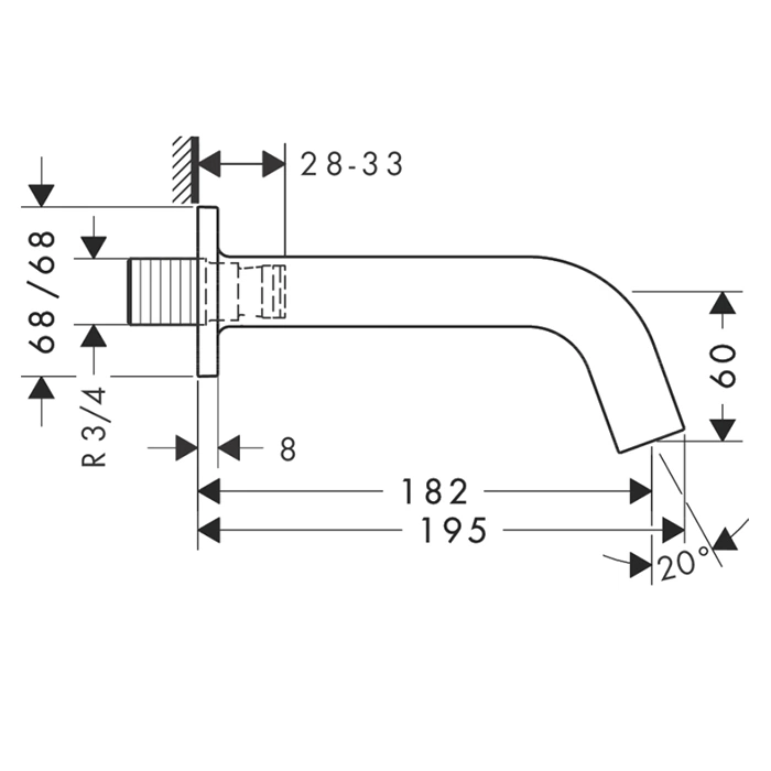 Излив для ванны AX Citterio M имеет фиксированную длину 182 мм, что является оптимальным для большинства стандартных ванн. Такой вылет позволяет направлять поток воды точно в центр емкости, минимизируя разбрызгивание. Модель предназначена для настенного монтажа и совместима со многими современными смесителями соответствующего производителя. Простая и надежная конструкция облегчает установку и дальнейшее обслуживание.