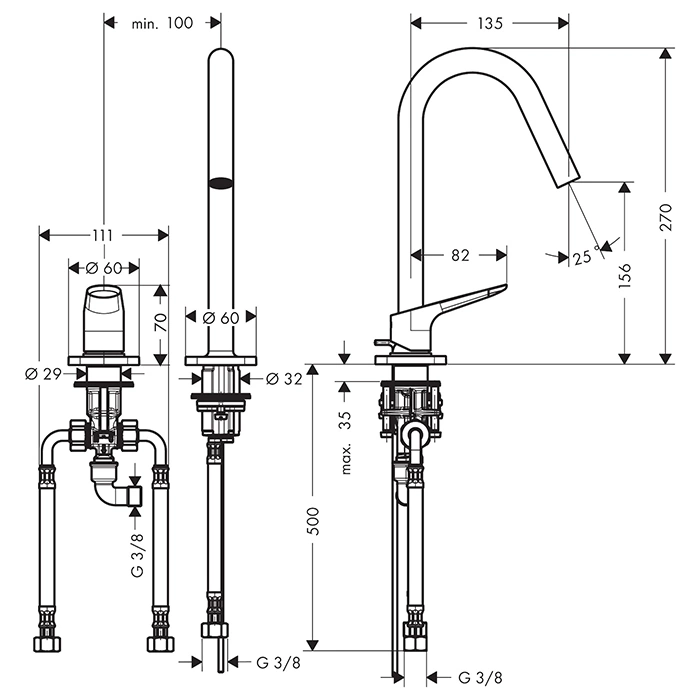 При монтаже смесителя AX Citterio M уделите особое внимание состоянию гибкой подводки. Убедитесь, что шланги не перекручены и не натянуты, иначе это создаст напряжение в точках соединения и может привести к протечке в будущем.