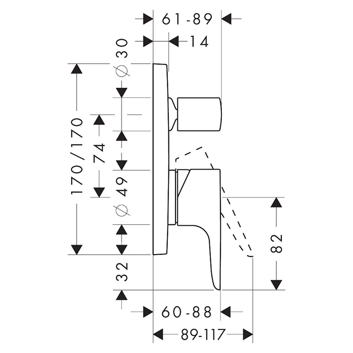 Данная модель является настенным смесителем для ванны с душем. Он предназначен для установки на стену рядом с ванной, подавая воду как в саму ванну через излив, так и на душевую лейку через переключатель.