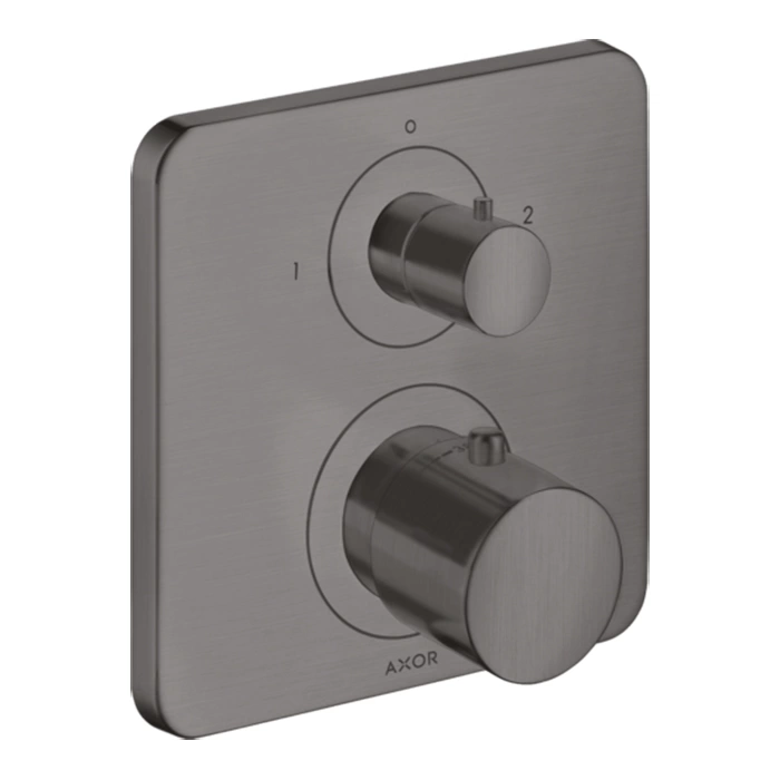 Термостат AX Citterio M обеспечивает безопасность (защита от ошпаривания), комфорт (постоянная температура) и экономию воды. Модель с двумя выходами позволяет подключить, например, верхний душ и ручной душ. Встраиваемый монтаж экономит пространство и выглядит эстетично, а покрытие "шлифованный черный хром" отличается высокой стойкостью к внешним воздействиям и современным дизайном.