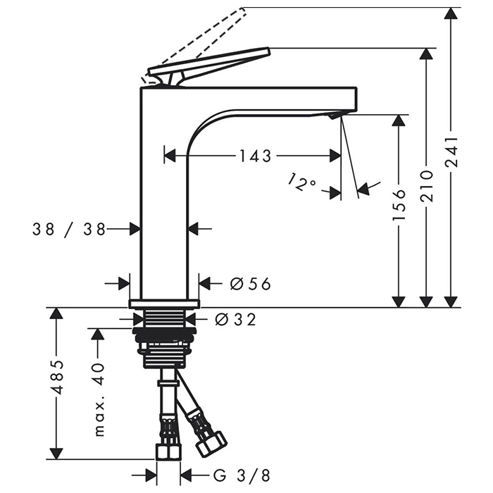 Смеситель для раковины AX Citterio 160 мм с незапорным сливом, текстурой и покрытием хром (39081000)