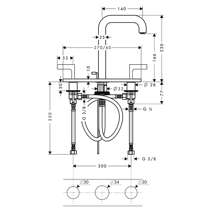 Смеситель для раковины AX Citterio (39136250) относится к категории настольного монтажа. Это классическое и самое надежное решение, упрощающее как установку, так и возможное будущее обслуживание. Все необходимые крепежные элементы идуют в комплекте.