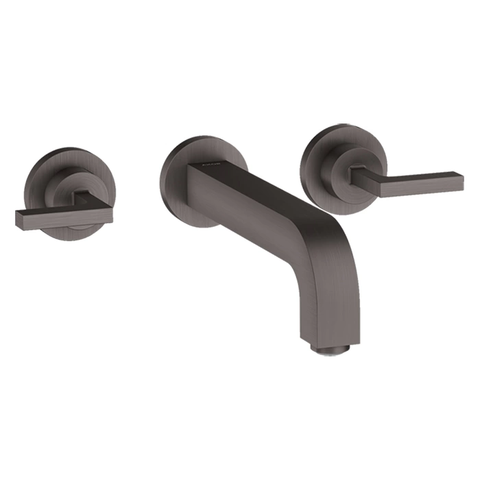 Корпус смесителя AX Citterio изготовлен из латуни, что обеспечивает его прочность и долговечность. Покрытие - матовый черный хром, которое отличается стойкостью к появлению царапин и известкового налета.